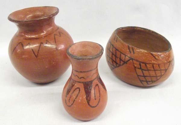 3 Pieces of Vintage Native American Maricopa Pottery, largest measures approx. 3.5'' x 3''. Buyers Pay Actual Shipping and Handling Charges(see terms and conditions for more information)