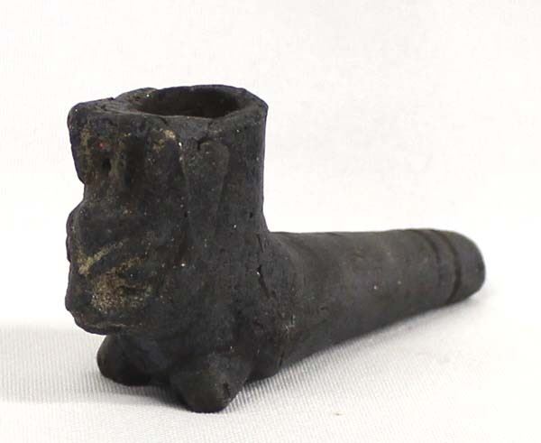 Vintage Native American Micaceous Clay Rabbit Pipe, measures 4'' x 2'' x 1'', has a chip out of rim