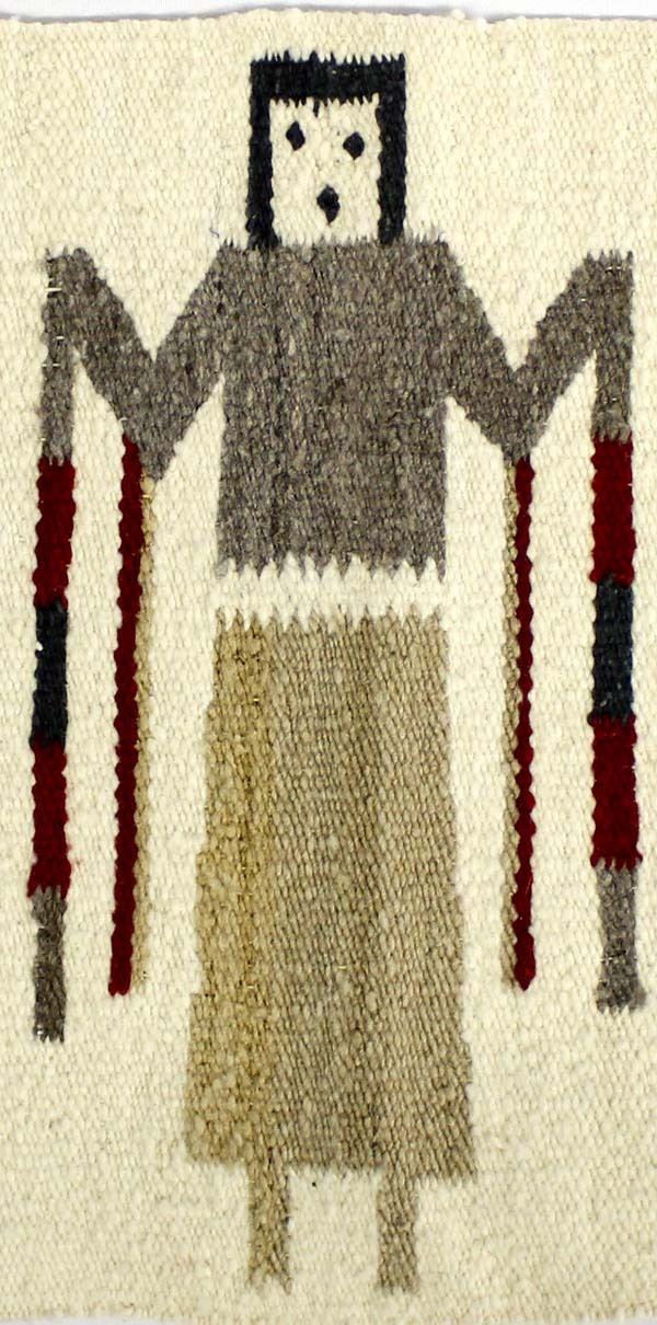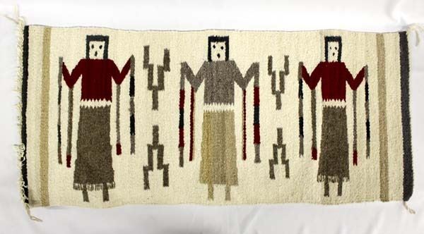 Antique/Vintage Native American Navajo 3 Yei Textile Rug, measures 17'' x 38''L, does have some moth damage, fringed on one end with 2 tassels on the opposite end
