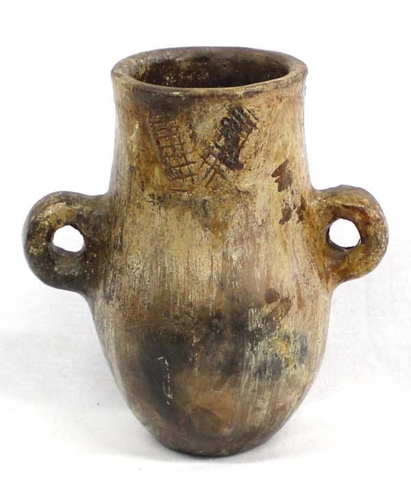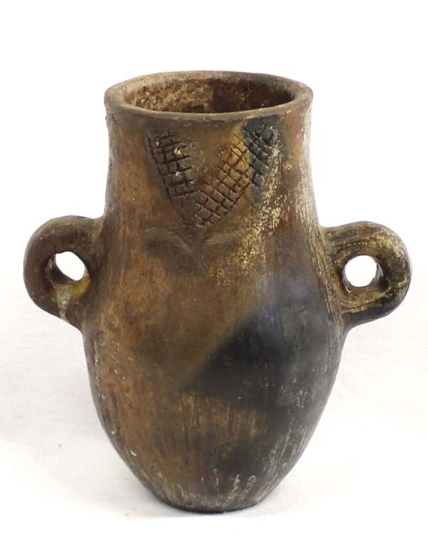 Vintage Native American Navajo Corn Pottery Vase, measures 6'' x 6.75'' x 4'', double handles