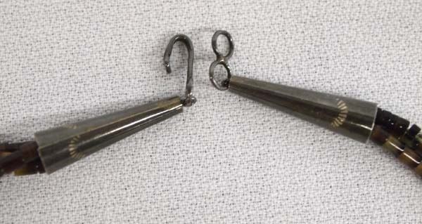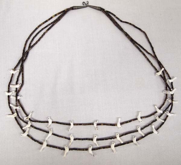 Vintage Native American Navajo Heishi and Fetish Necklace, sterling cones, measures 28'' end to end
