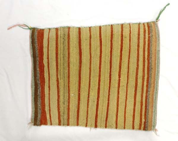 Vintage Native American Navajo Textile Rug, measures 24'' x 28'', 2 long tassels and 2 short tassels, some worn areas and pulled threads, natural wool, small hole in middle