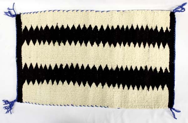 Vintage Native American Navajo Wool Rug, measures 17.5'' x 29'', four cornered tassels intact