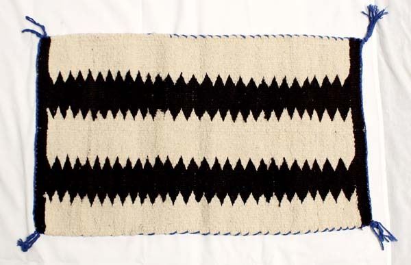 Vintage Native American Navajo Wool Textile Rug, measures 17.5'' x 29'', 4 cornered tassels intact, does have moth damage