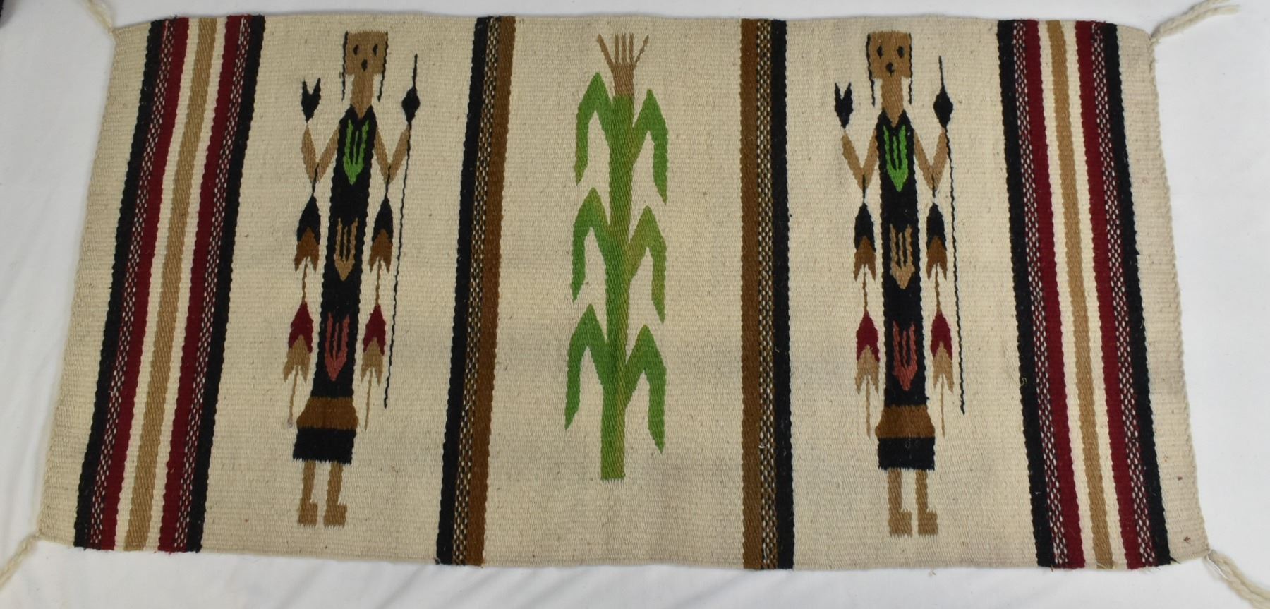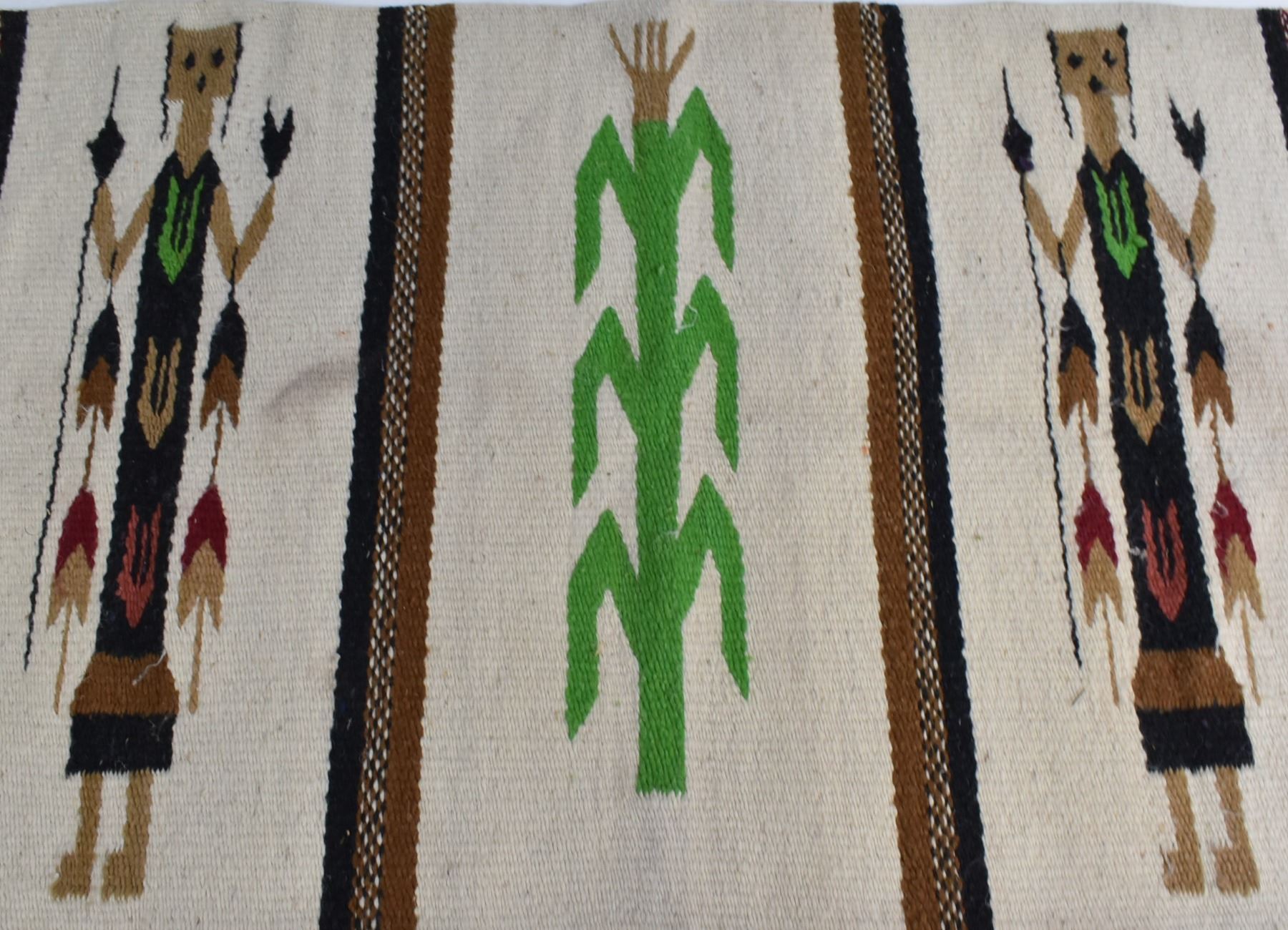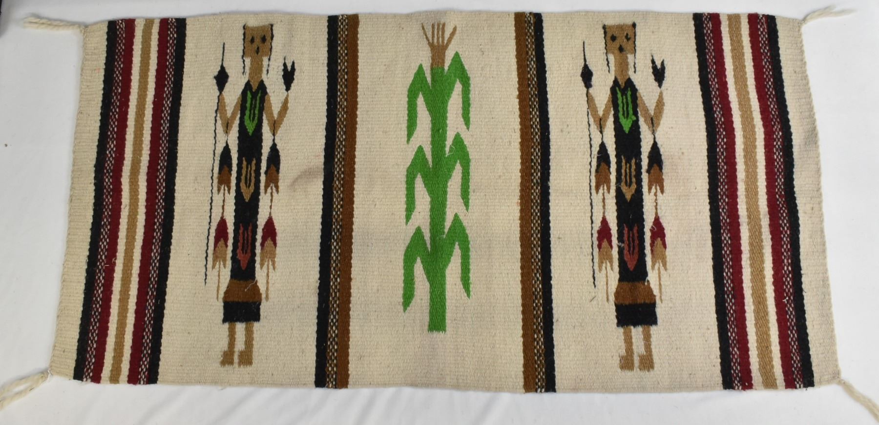 Vintage Native American Navajo Yei bi Chei Wool Textile Rug, 4 cornered tassels intact, 41''L x 21.5''W
