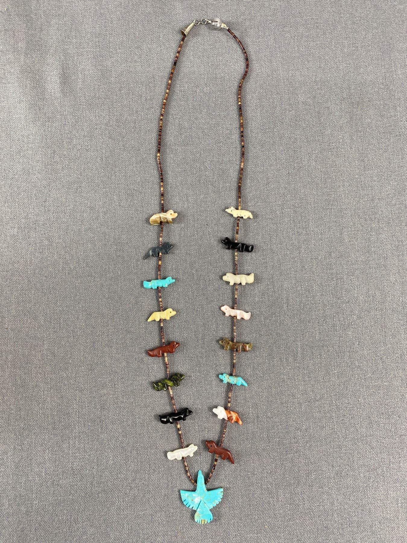 Vintage Native American Possibly Zuni Hand Carved Stone Necklace, One End by Clasp Repaired