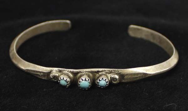 Vintage Native American Navajo Sterling Silver Turquoise Bracelet, inside measures 6'' (which includes the opening) x .25''