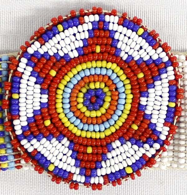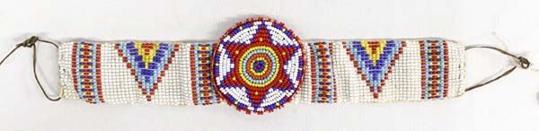 Vintage Native American Sioux Beaded Armband, measures 10''L end to end, beaded on doeskin, medallion measures 2.25''D, vibrant colors