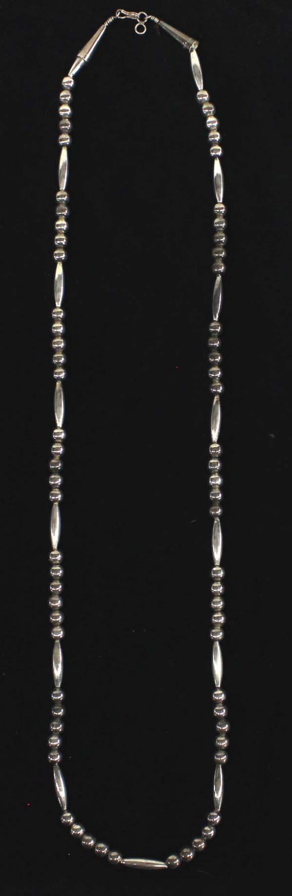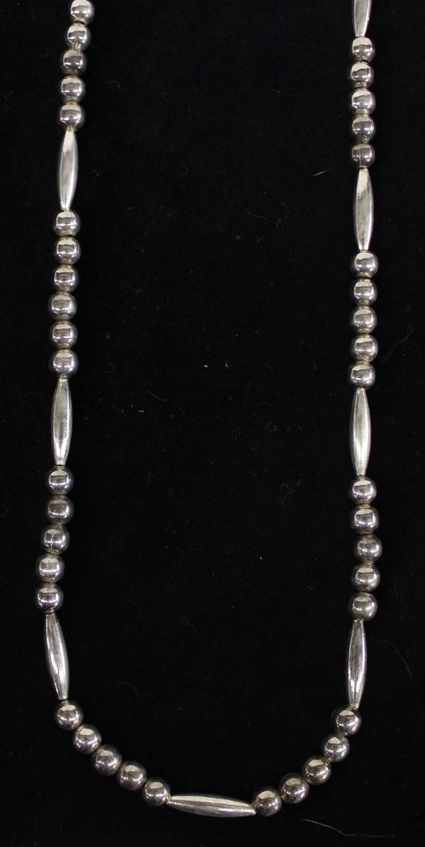 Vintage Native American Sterling Bead Necklace, measures 29''L end to end, 48.41gtw
