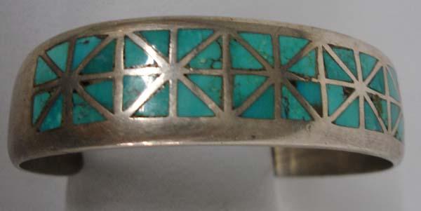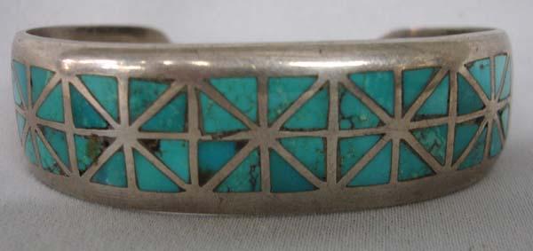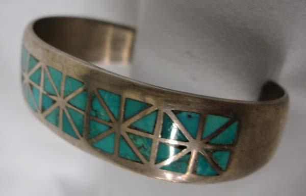 Vintage Zuni 1960s Silver Turquoise Inlay Bracelet. Measurement in Inches - Inside Length(Including Opening)/Width is 6-3/8x5/8. Buyers Pay Actual Shipping and Handling Charges(see terms and conditions for more information).