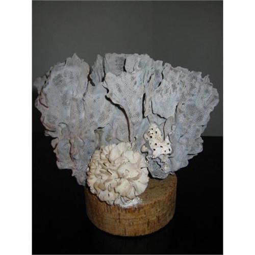 This Natural 9 inch grey/blue coral is prized collectors. This vintage and wonderful nautical coral is situated on a round cork base. The rough natural coral is decorative. the colors and textures are amazing. base is 5 inch in diameter, and is 11 inch wide. this object is in great condition.