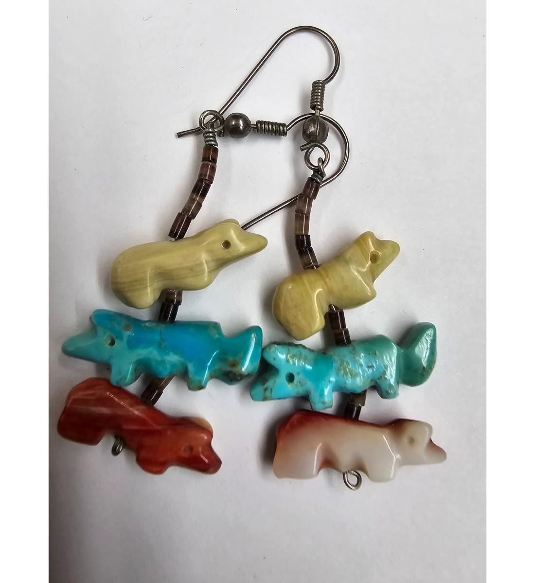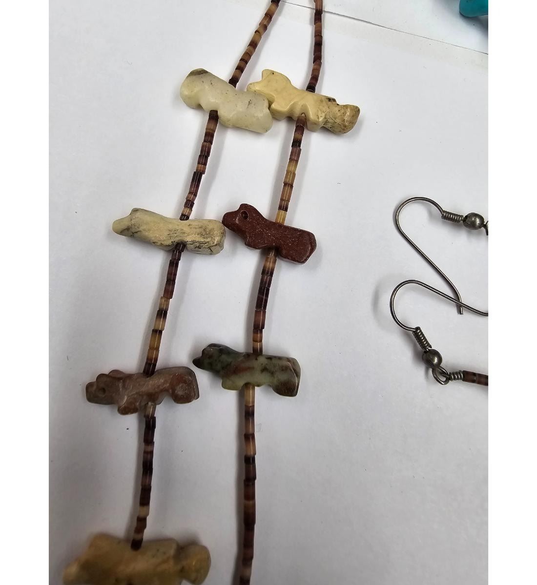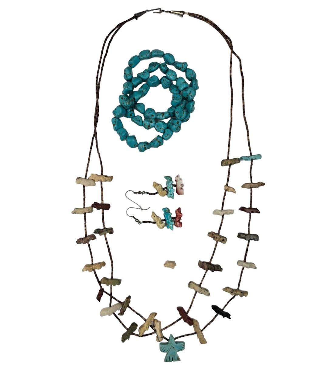 Vintage Navajo 2-Strand Fetish Necklace With Earrings And 3 Turquoise Bracelets