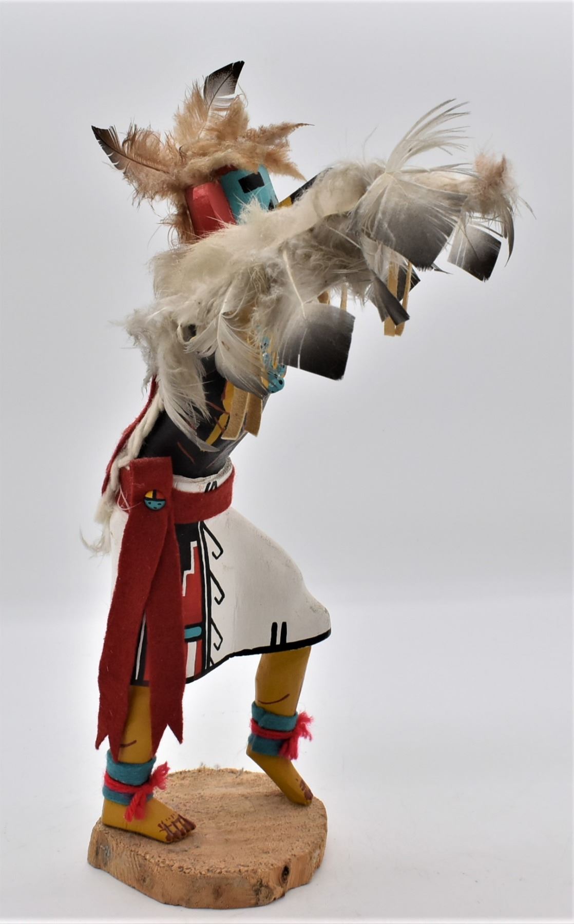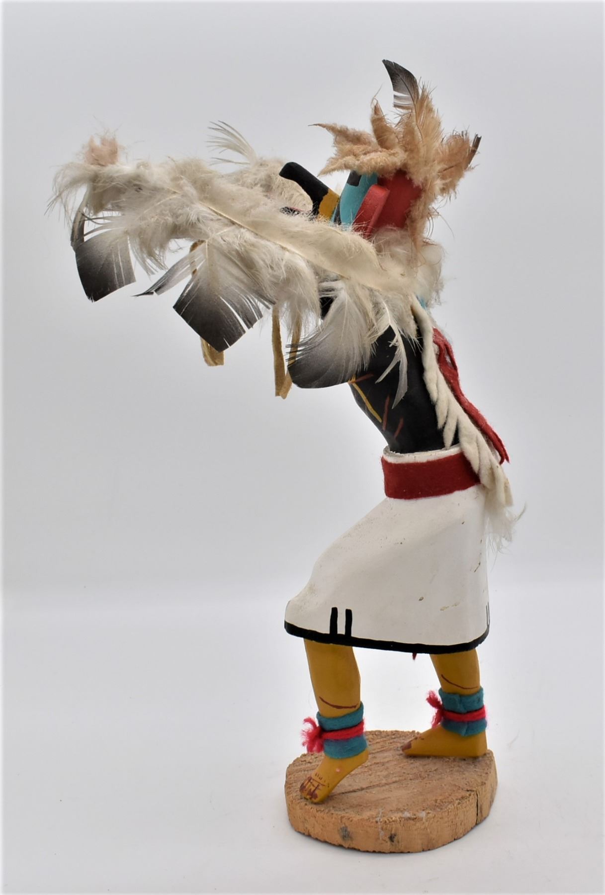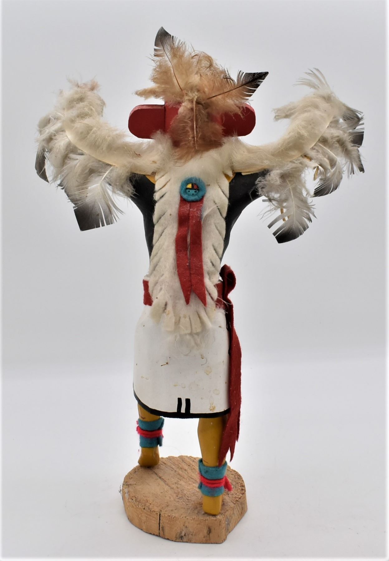 Vintage Navajo Eagle Dancer Kachina, artist's initials P.Y. on the bottom, embellished with feather, leather, felt, and yarn