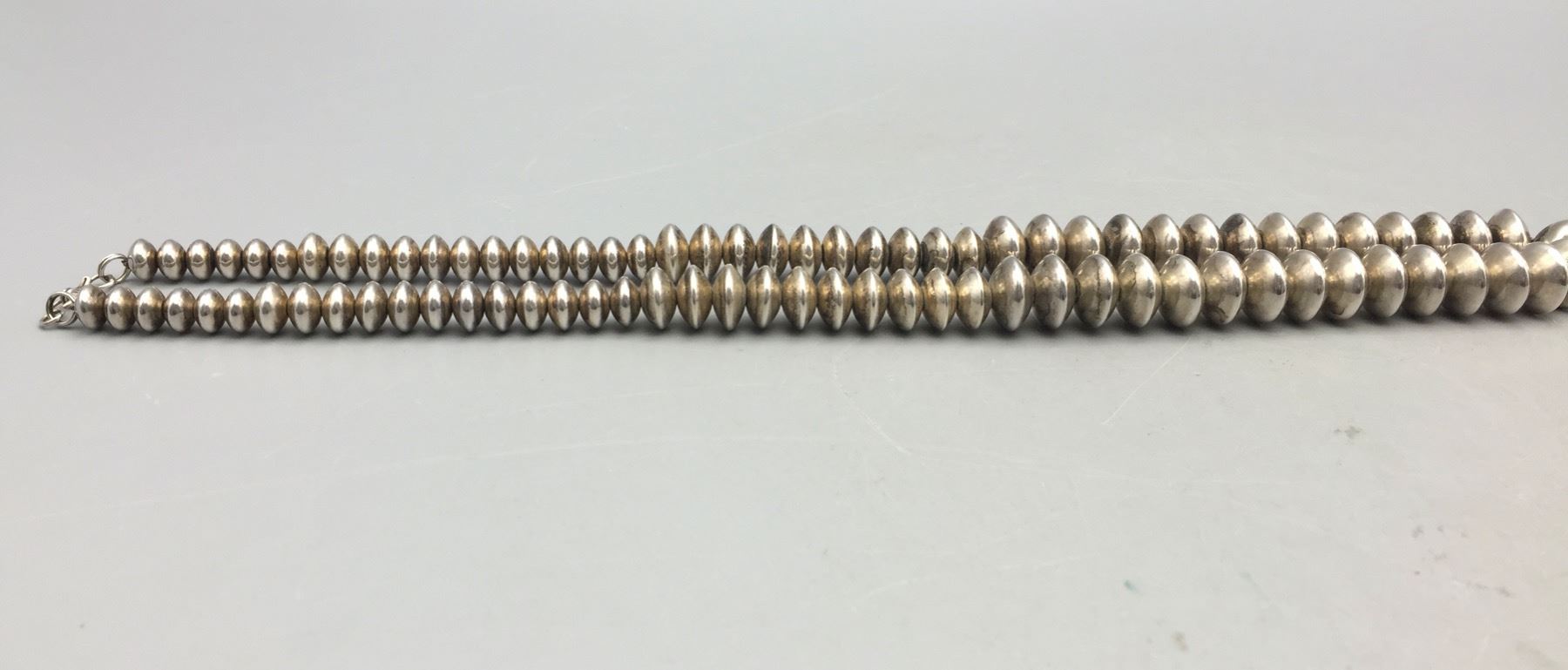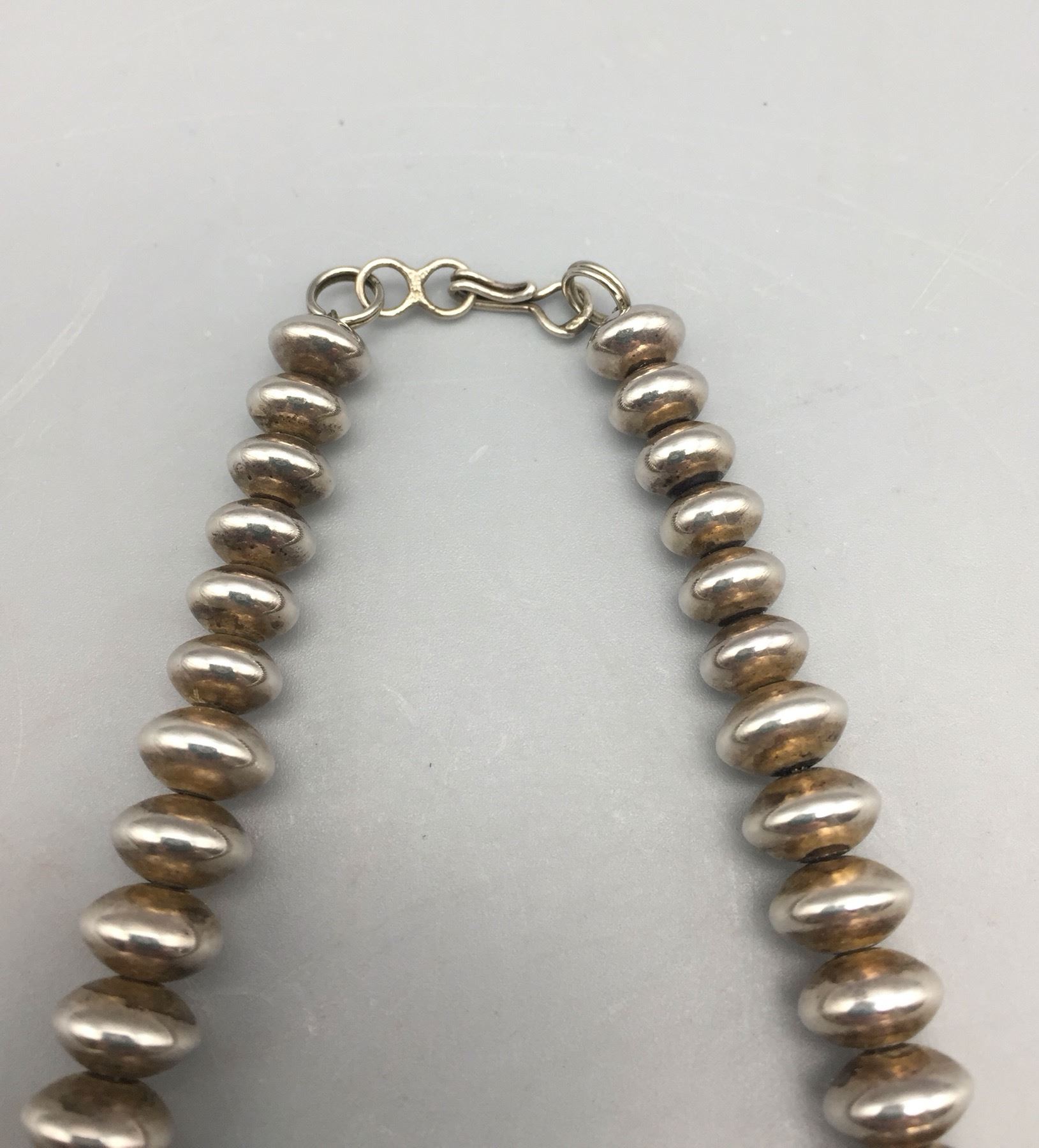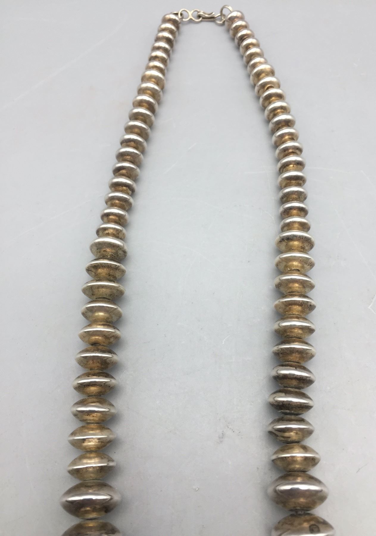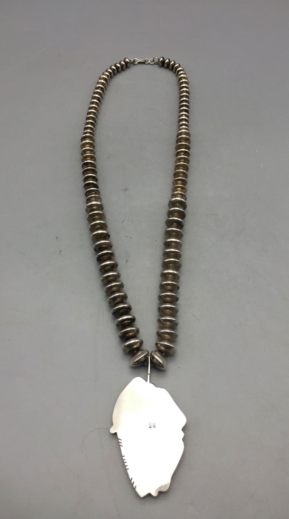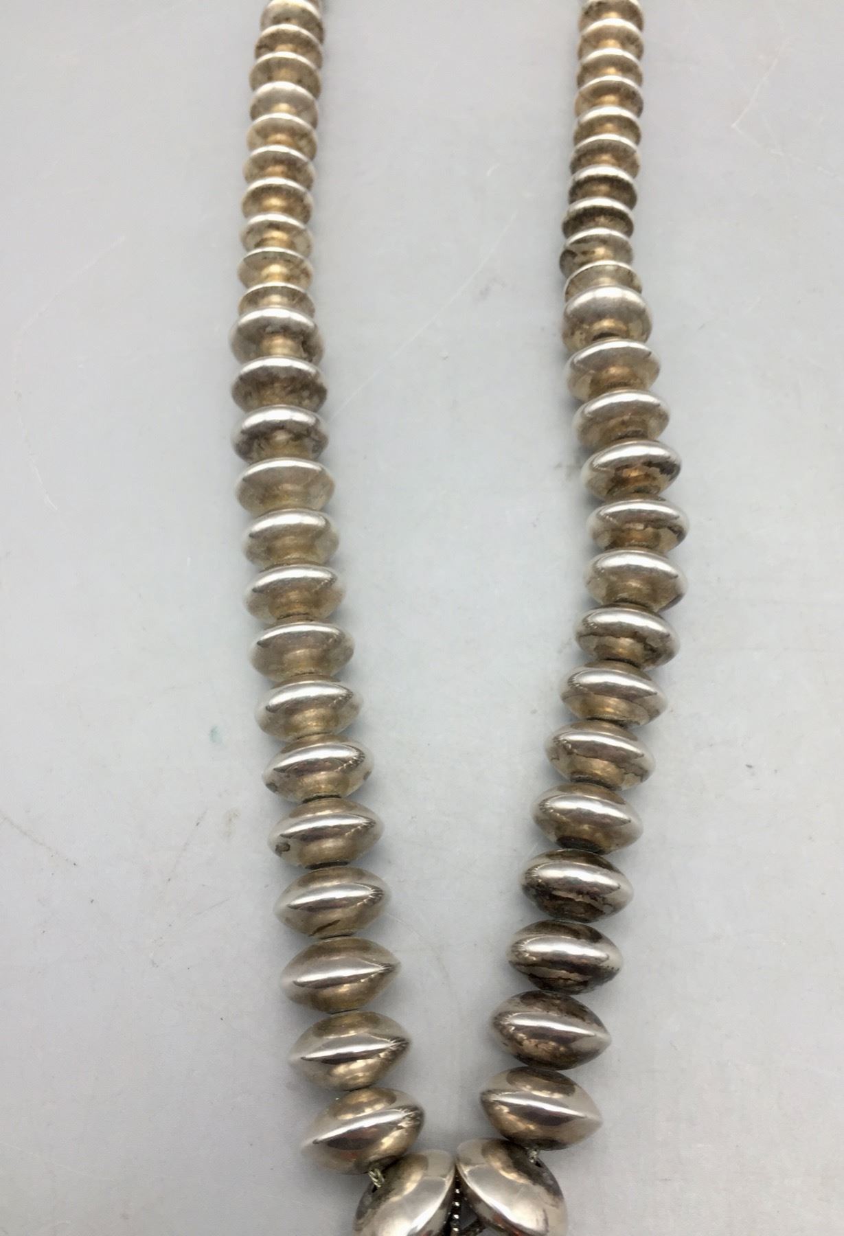 Description: Presented for sale in this lot we have a vintage “Navajo pearls” or silver beads necklace with a coral cluster pendant. This beautiful necklace has graduated sterling silver beads with a vibrant coral cluster pendant. Maker: The pendant is marked by Wilson Padilla, Navajo. Approx. Age: Vintage to modern. Size: Fits a 22 inch neck. Pendant is additional 3 inches long x 1-3/4 inches wide. Weighs 122.7 grams. Condition: Good for its age, normal wear expected. Please look closely at the pictures - they are an important part of our description. Shipping: There will be a $5 handling, packaging fee for shipping this lot. The actual cost of postage will be added on top of that.