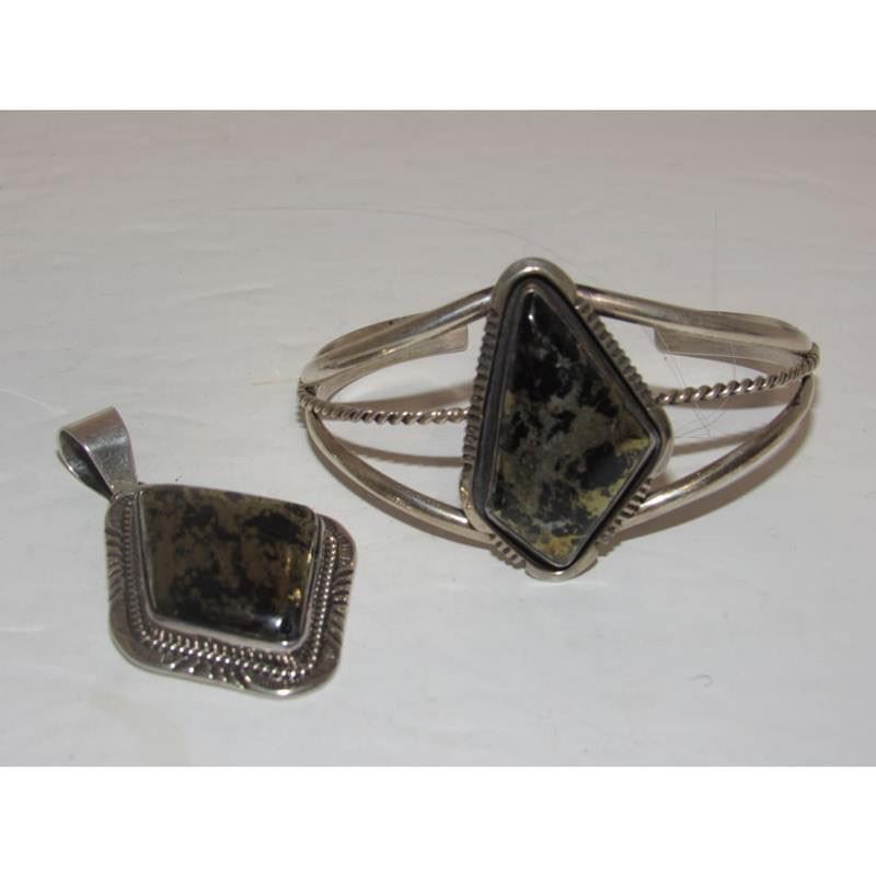 Vintage Navajo Pendant Bracelet Apache Gold Sterling Silver Set W. Denetdale