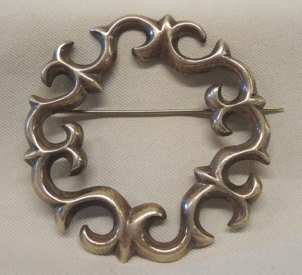 Vintage Navajo Sandcast Sterling Silver Pin. Measures approx. 2 1/4'' diameter. SHI $15.