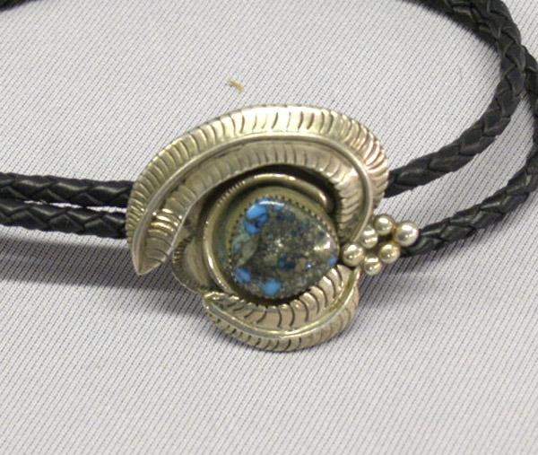 Vintage Navajo Silver Matrix Turquoise Bolo, measures approx. 2'' x 1 3/4''. SHI $15.