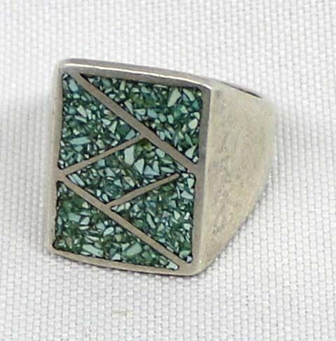 Vintage Navajo Sterling & Chip Inlay Ring, Sz 9.5