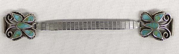Vintage Native American Navajo Sterling & Chip Inlay Butterfly Watch Band, tips measure 1''L
