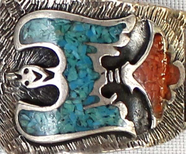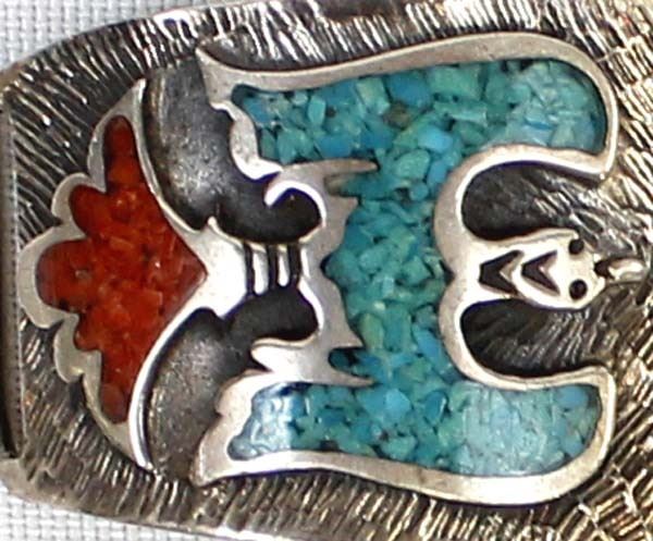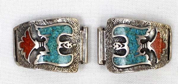 Vintage Native American Navajo Sterling Chip Inlay Turquoise & Coral Watch Tips, tips measure 1'' x 1.5'', total gram wt. of 21.5