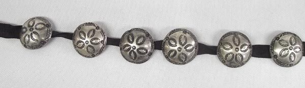 Six vintage Navajo Sterling Silver Concho Buttons, .75''D, hand stamped flower design