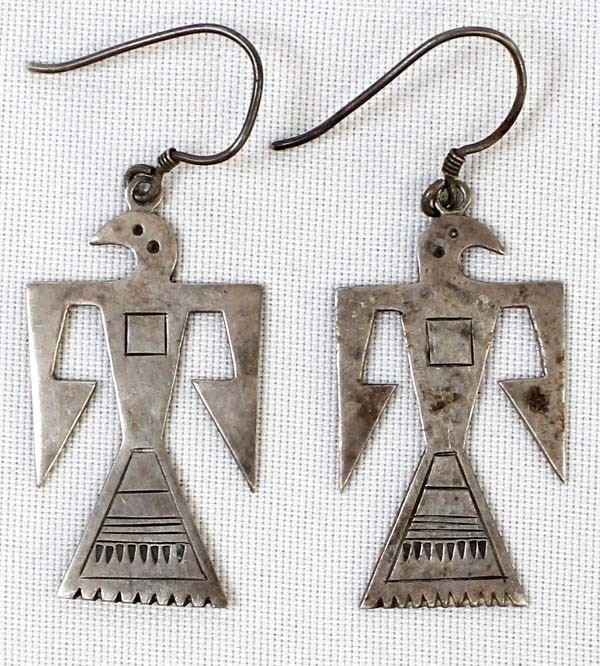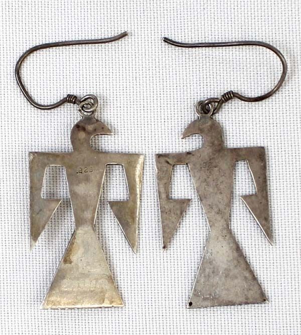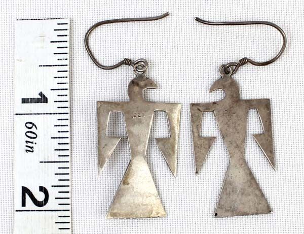 Vintage Native American Navajo Sterling Thunderbird Earrings, measure 2.25''L which includes the wire x 1'', although they are not stamped sterling we believe they are