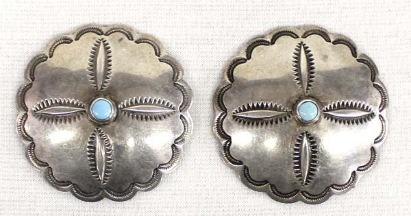 Antique/Vintage Navajo Sterling Turquoise Buttons, hand stamped details, measure 2''D, beautiful pieces