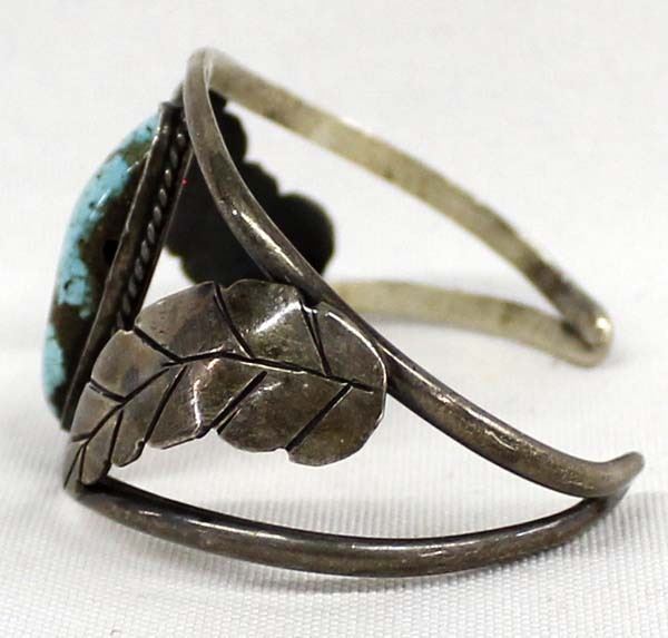 1960s Native American Navajo Sterling Turquoise Bracelet, inside measures 6'' which includes the gap x 1 1/4''W