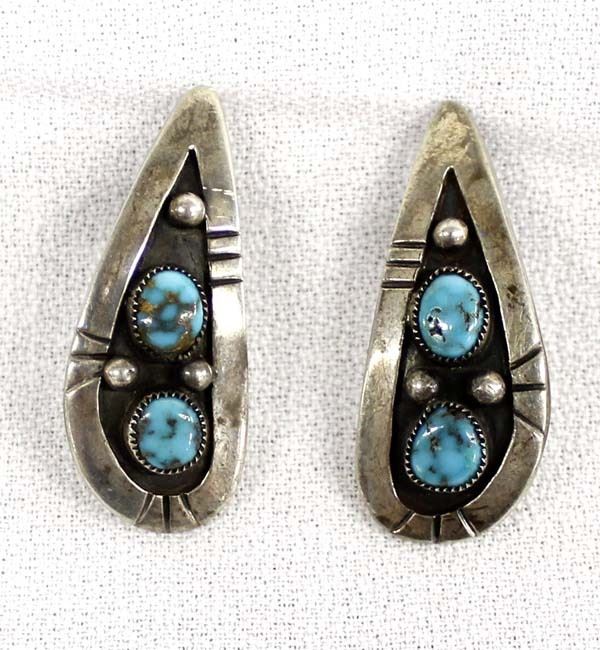 Vintage Native American Navajo Sterling Turquoise Earrings, measure .5'' x 1.5''L