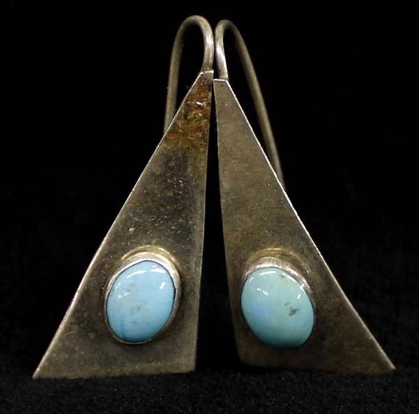 Vintage Native American Navajo Sterling Turquoise Earrings, measure 1.5''L, ca. 1960s Little White Dove Trading, both are stamped sterling