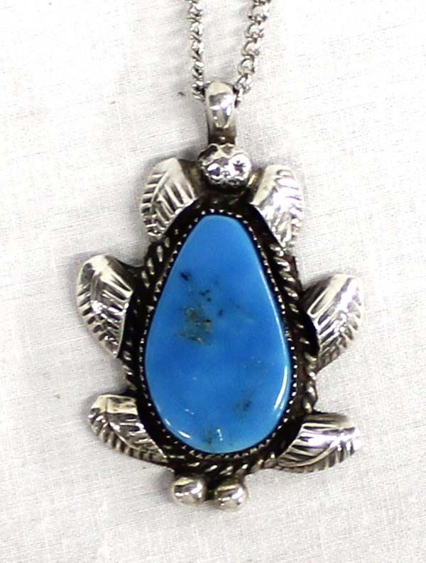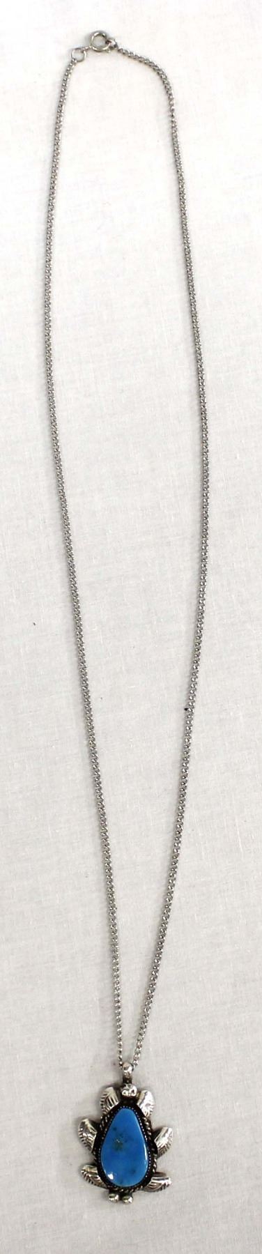 Vintage Native American Navajo Sterling Turquoise Pendant Necklace, pendant measures 1.5''L which includes the bale x 1''W, chain which is not sterling measures 24''L end to end