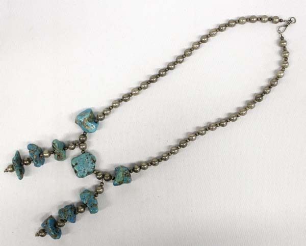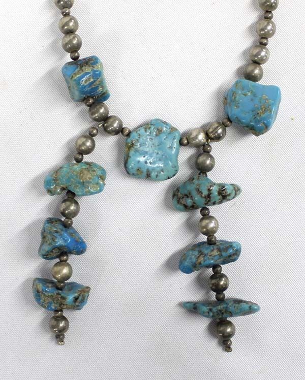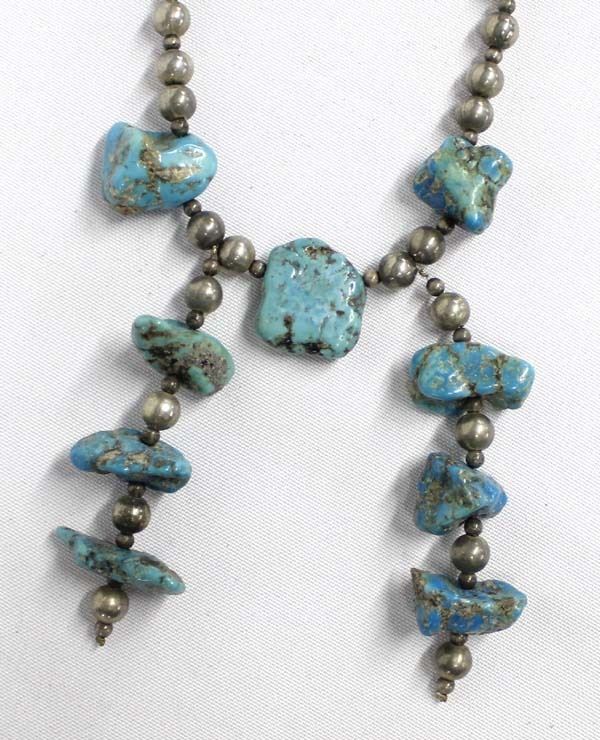Antique/Vintage Navajo Sterling Turquoise Nugget Necklace, measures 20''L end to end, largest nugget measures 1.5''
