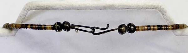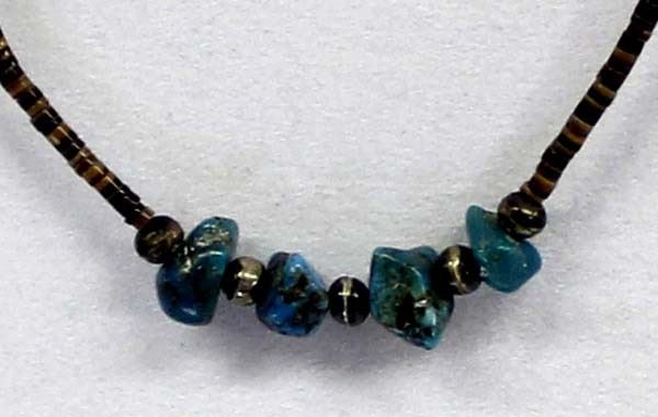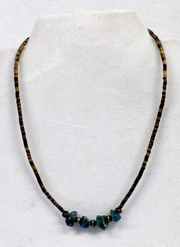 Vintage Native American Navajo Sterling and Turquoise Nugget Necklace, features 4 turquoise nuggets measuring .25''L, 8 sterling silver hollow beads, and pen shell heishi, sterling clasp, measures 14''L end to end