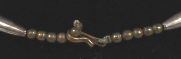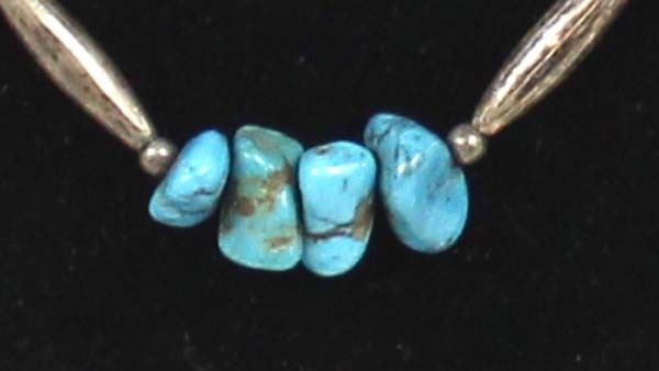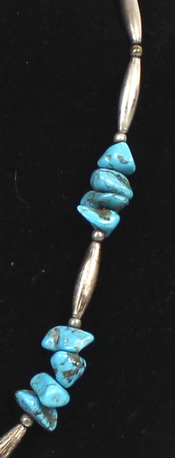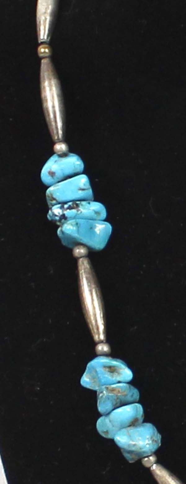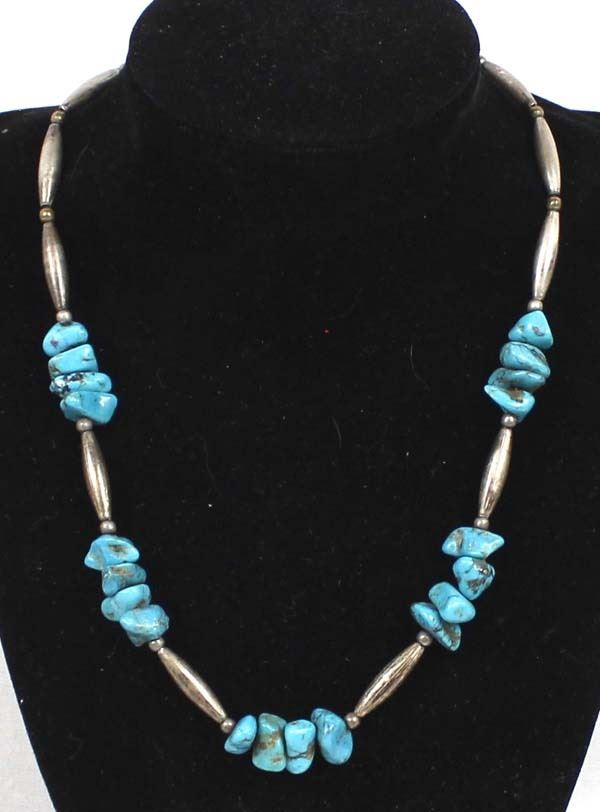 Vintage Native American Navajo Sterling Hollow Bead and Turquoise Nugget Choker Necklace, sterling clasp, measures 16''L end to end, largest nugget measures .5''L