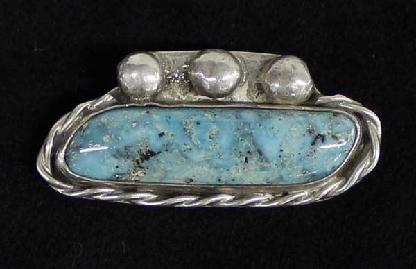 Vintage Native American Navajo Sterling Turquoise Pin, measures 1.5''L, ca. 1960s Little White Dove Trading, 13.77g in total wt., beautiful turquoise cab measuring 1 5/8''L x .5''W
