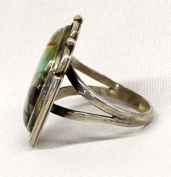 Vintage Native American Navajo Sterling Turquoise Ring by Irene Platero, Size 12, measures 1.25'' x 7/8'', stunning turquoise cabochon measures 1'' x .75'', hallmarked IP