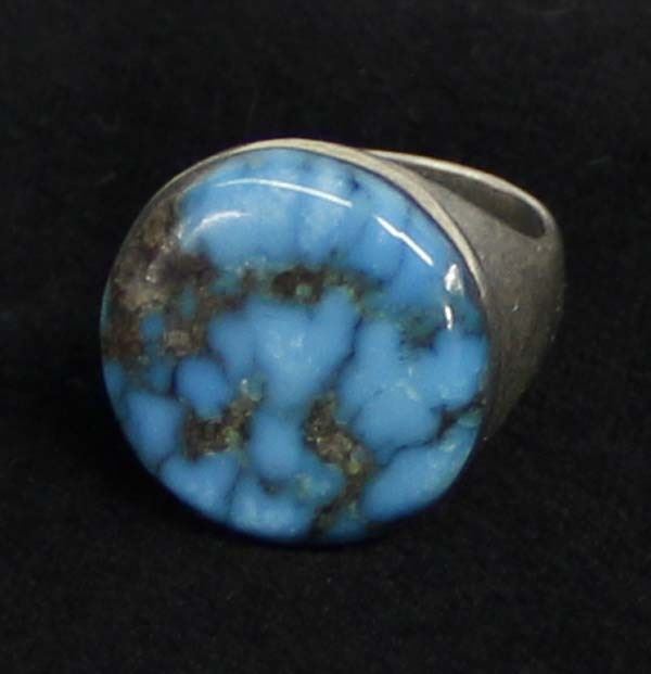 Vintage Native American Navajo Sterling Turquoise Ring, Size 7.5, measures 7/8''D, beautiful turquoise cabochon, ca. 1960s Little White Dove Trading, nice thick silver shank, 14.89g in total wt.