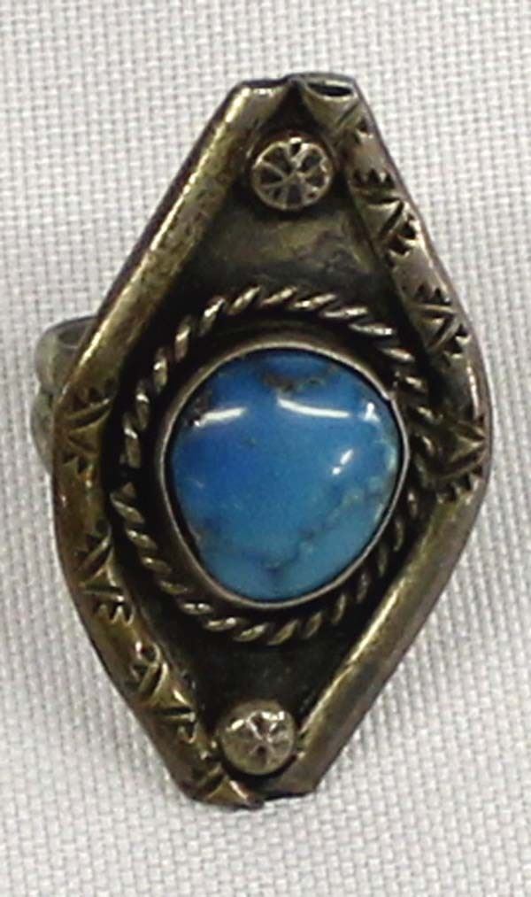 Vintage Navajo Sterling Turquoise Ring, Size 7.75