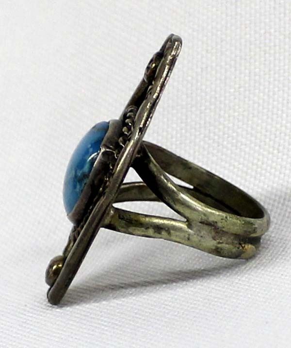 Vintage Native American Navajo Sterling Turquoise Ring, Size 7.75, measures 1 3/8''L x 7/8''W, cabochon measures .5''D