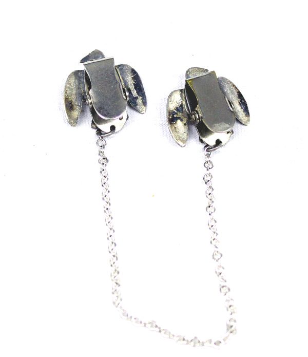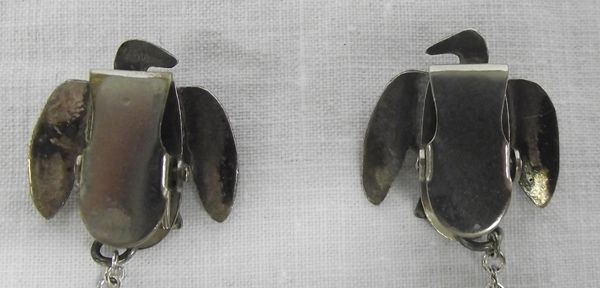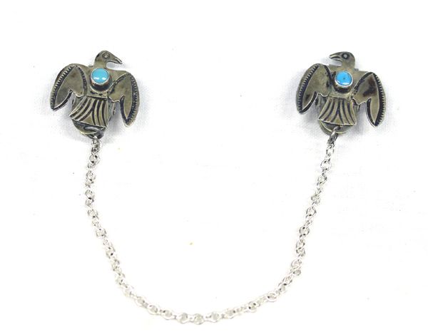 Vintage Navajo Sterling Turquoise Thunderbird Sweater Clips, each Thunderbird measures 7/8'' x 7/8'', new chain