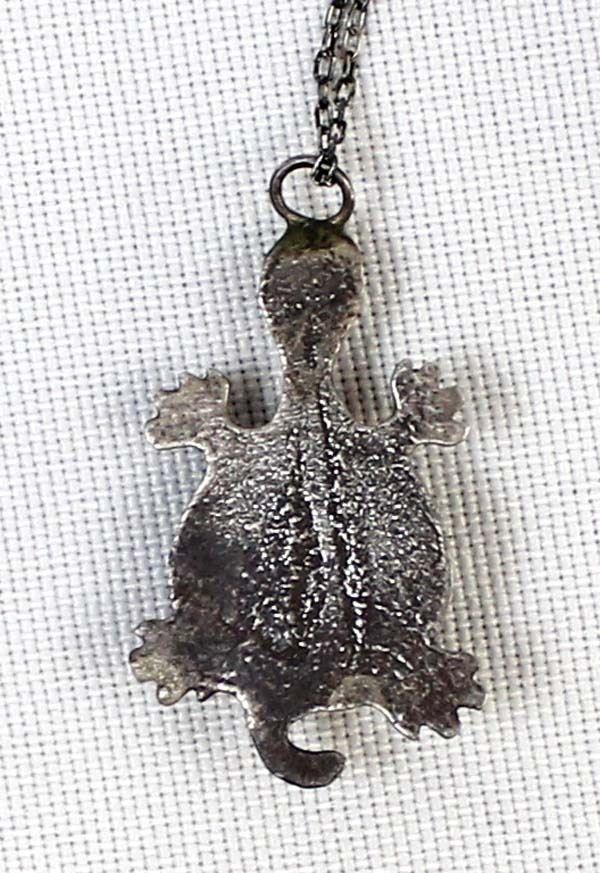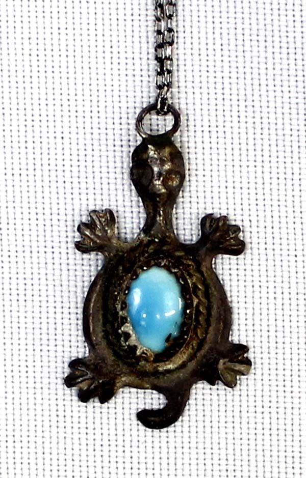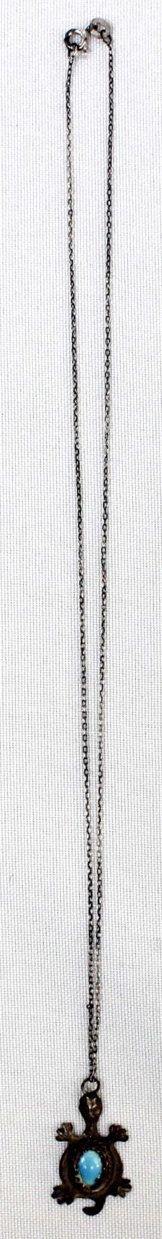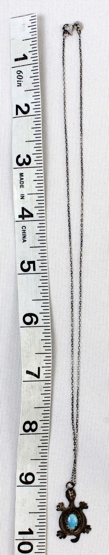 Vintage Native American Navajo Sterling Turquoise Turtle Pendant Necklace, pendant measures .5'' x 1'', sterling chain measures 18''L end to end and is stamped .925