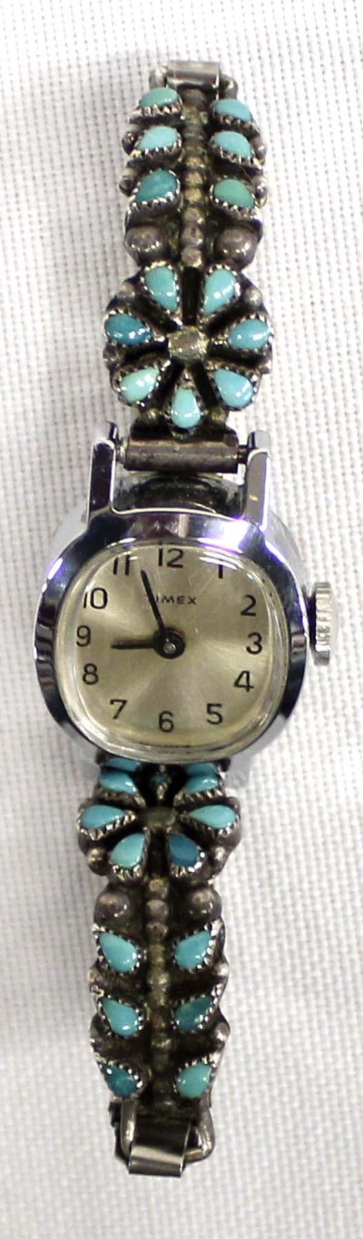 Vintage Native American Navajo Sterling Turquoise Watch Band by Pat Yazzie, tips measure .5''W, hallmarked PY