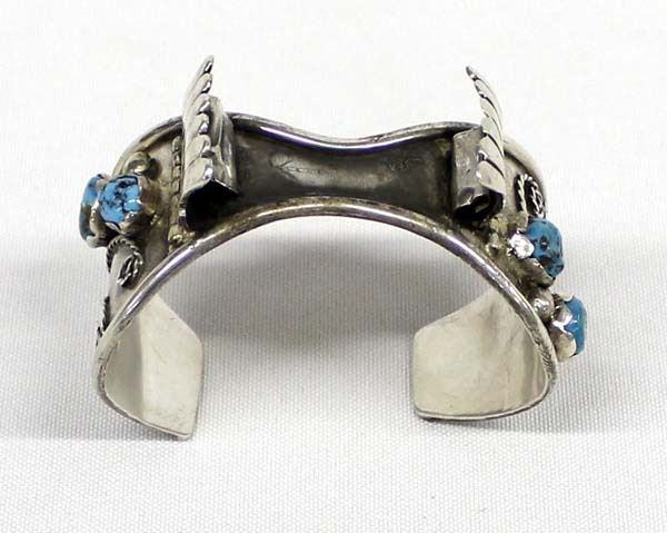 Vintage Native American Navajo Sterling Turquoise Watch Bracelet by Ernest McCrea, inside measures 7'' which includes the opening x 1''W, hallmarked E.M.C.