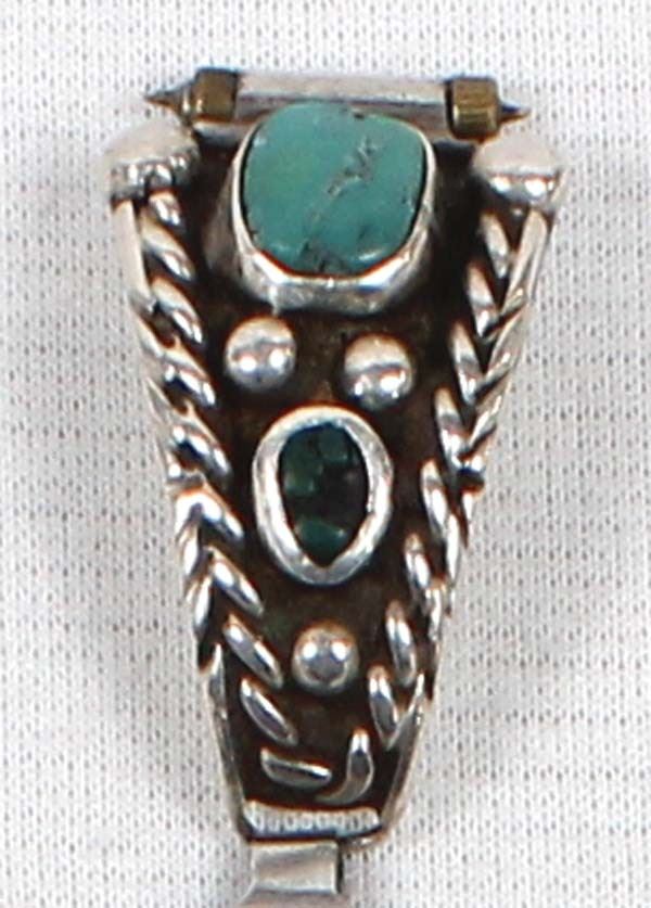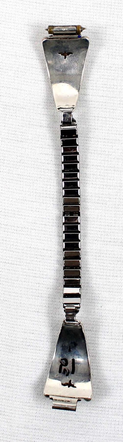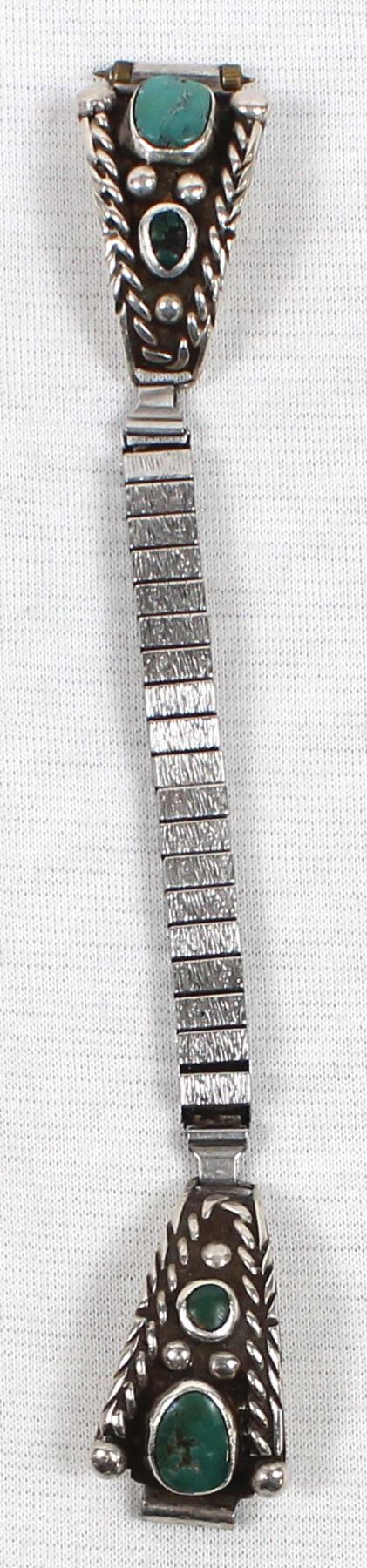 Vintage Native American Navajo Old Pawn Sterling Turquoise Ladies Watchband, tips measure .5'' x 1'', turquoise is old and dark green, has a bat hallmark