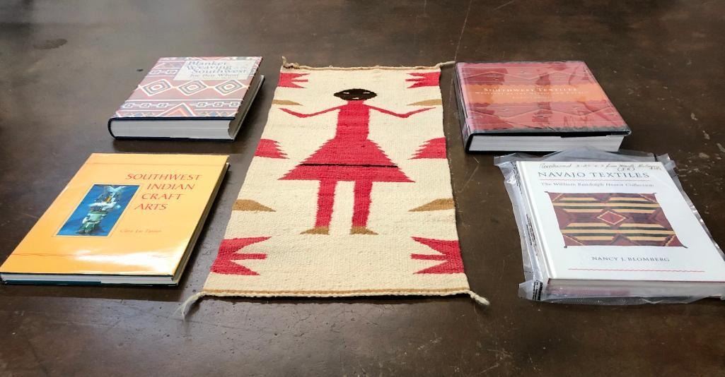 Included for sale is a nice grouping of items, including four books on the subject of textiles and one small pictorial textile. The books are full of valuable information and are from different authors while the little textile features designs in red, tans, and whites. MAKER: Various. APPROX AGE: Vintage and modern. SIZE: Textile 13-1/4 inches wide x 29-1/4 inches long. CONDITION: Pretty good for their ages, normal wear expected. Please look closely at the pictures as they are an important part of our description and are hereby incorporated into the description, specifically with regards to condition. SHIPPING: There will be a $10 handling / packaging fee for shipping this lot. The actual cost of postage will be added on top of that. BUY IT NOW: If you would like to buy this item now, without waiting for the auction day to bid on it, we do offer this option (which is available up to 48 hours before the actual auction starts). The “Buy it Now†price is the high estimate of this lot (plus applicable fees and the Buyer's premium is discounted to 10% when using the Buy it Now option). If you would like to exercise this option, you must contact us by email (or phone as long as you talk to someone live). Reference this lot number and your intention to "Buy it Now."