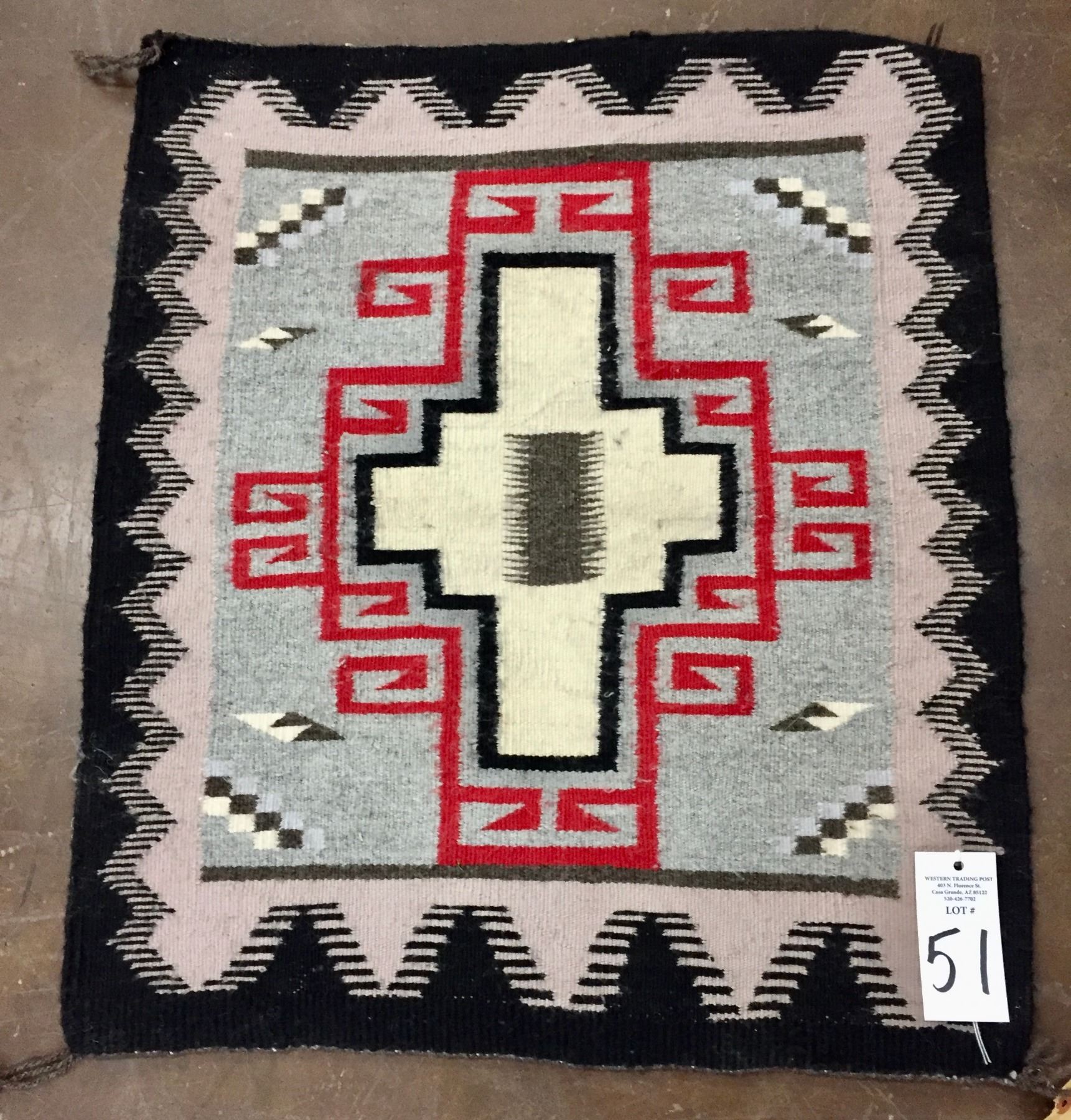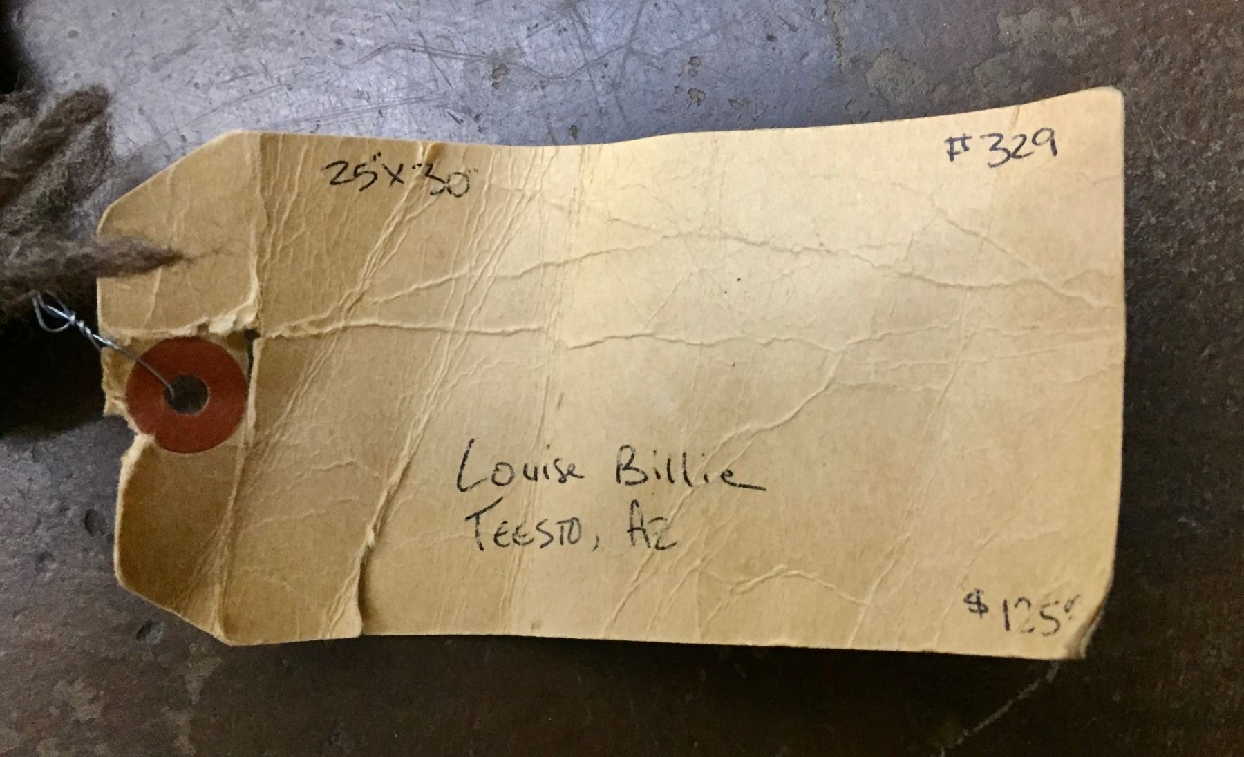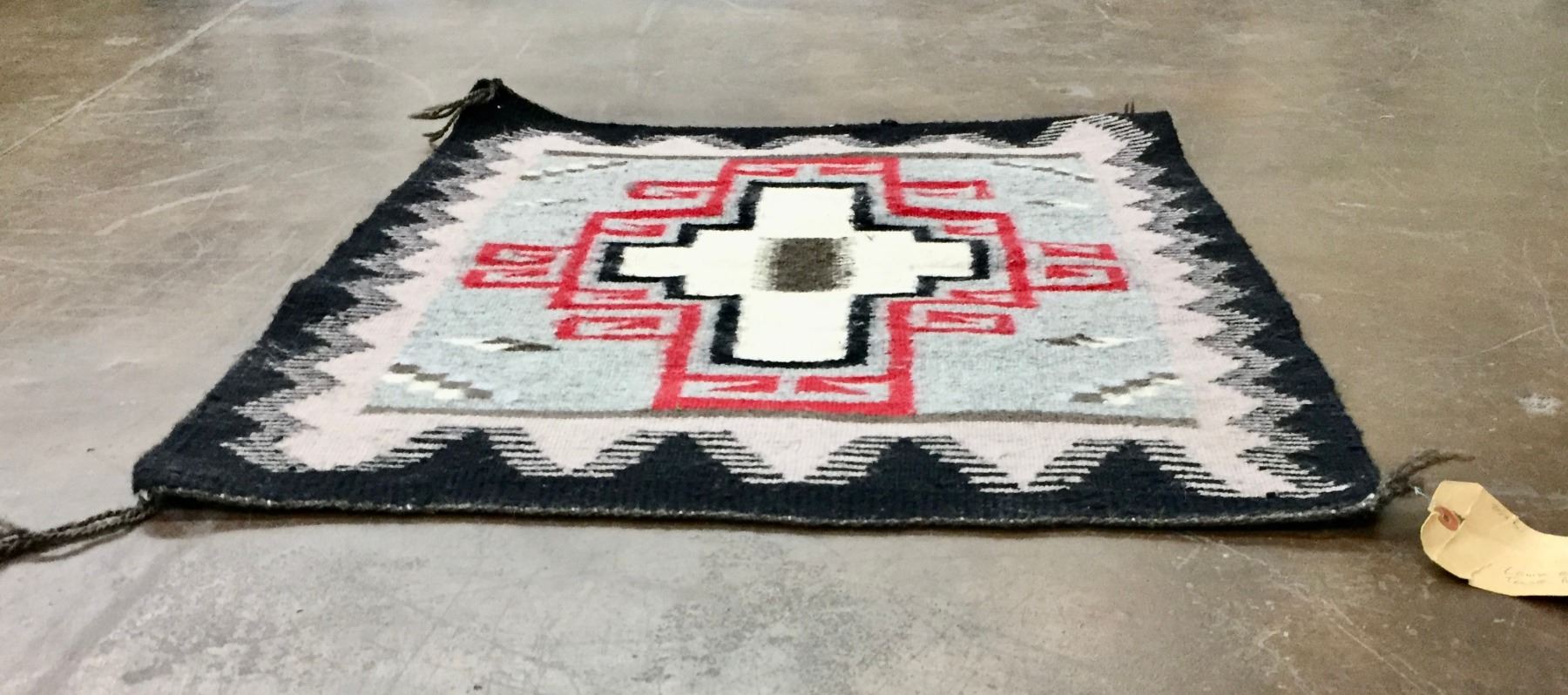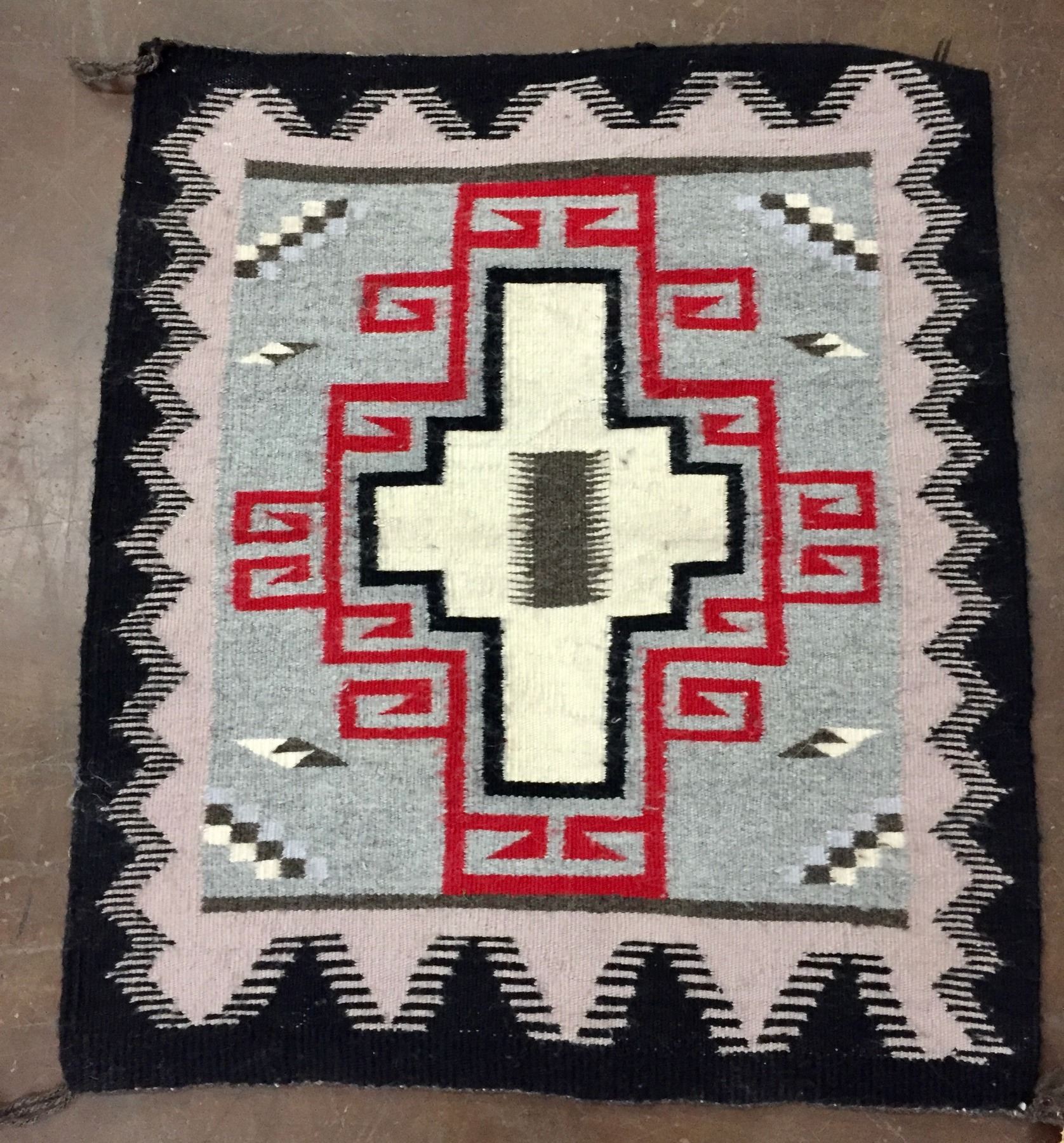 Description: Offered for you in this lot is a nice, vintage Navajo textile created by Louise Billie, featuring reds, grays, whites, and blacks.