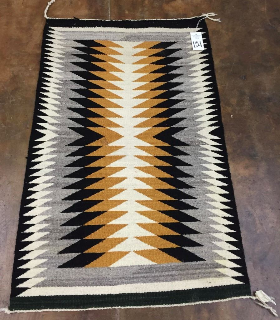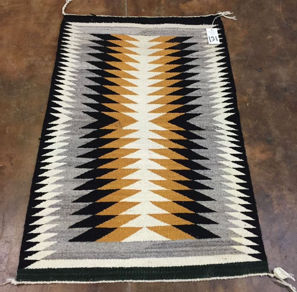 This vintage Navajo textile measures 31" x 49". Decent condition for its age (circa 1960s). Please look closely at the pics as they are an important part of our description. Shipping: There will be a $5 handling / packaging fee for shipping this lot. The actual cost of postage will be added on top of that.