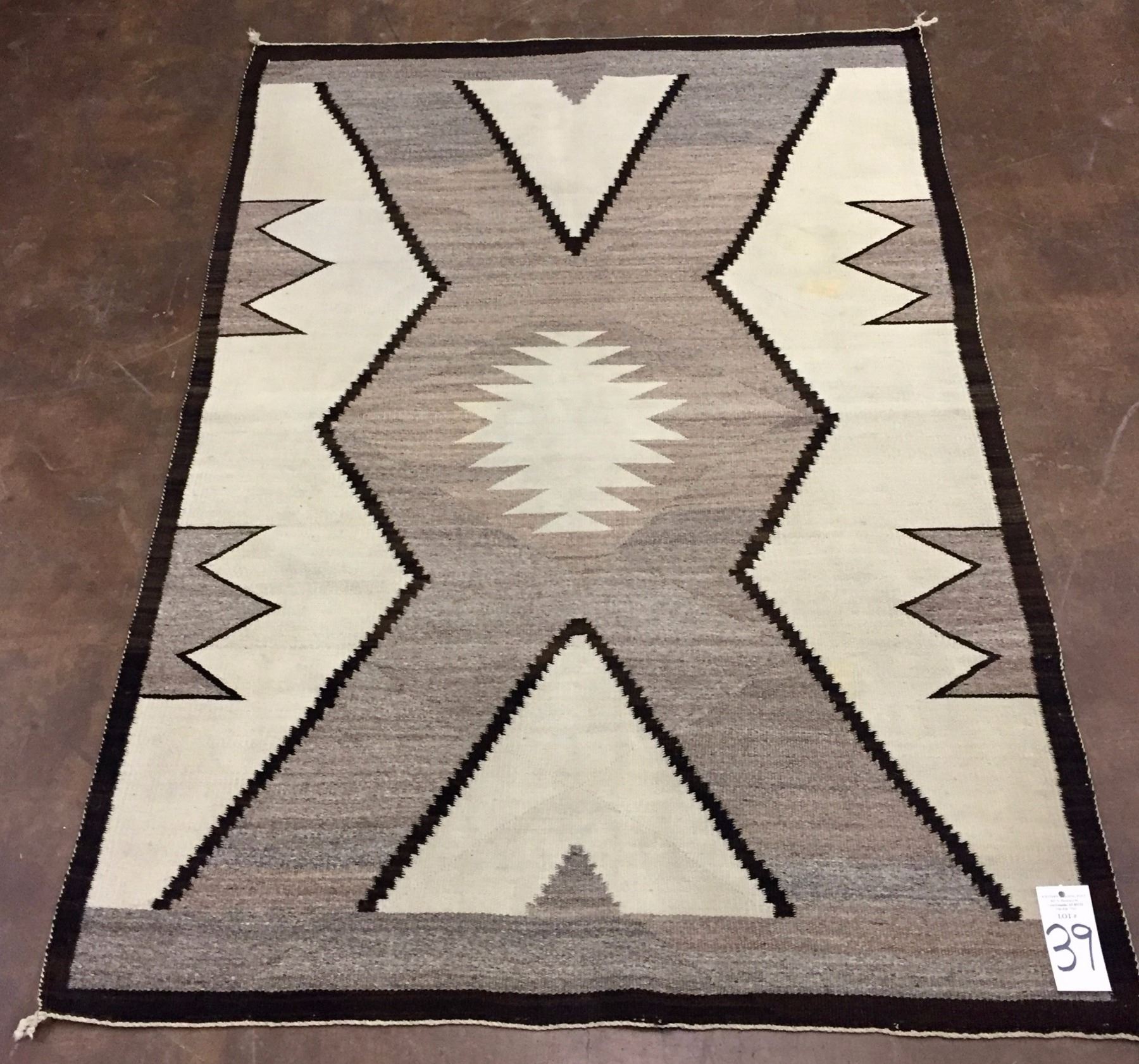 Maker: Unknown Navajo weaver. Approx. Age: Circa 1930s. Size: Measures 43 1/8” w x 63” l. Additional Info: A finely woven, vintage Navajo textile. Condition: Please note this textile has a small stain and has slight variegation in the color from time. Otherwise in nice shape for its age with only minor wear evident. Please look closely at the pictures - they are an important part of our description. Shipping: There will be a $8 handling / packaging fee for shipping this lot. The actual cost of postage will be added on top of that.