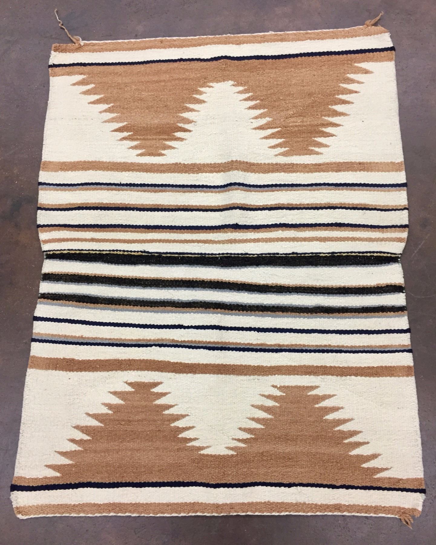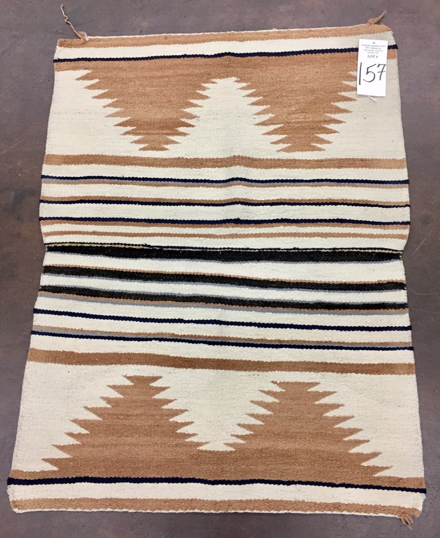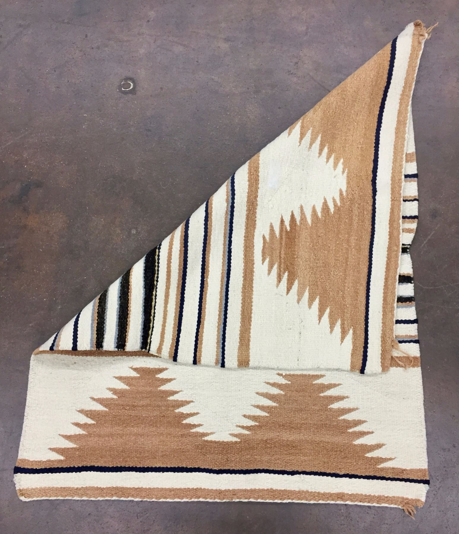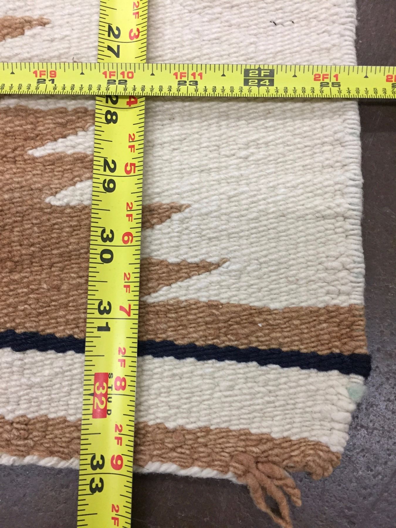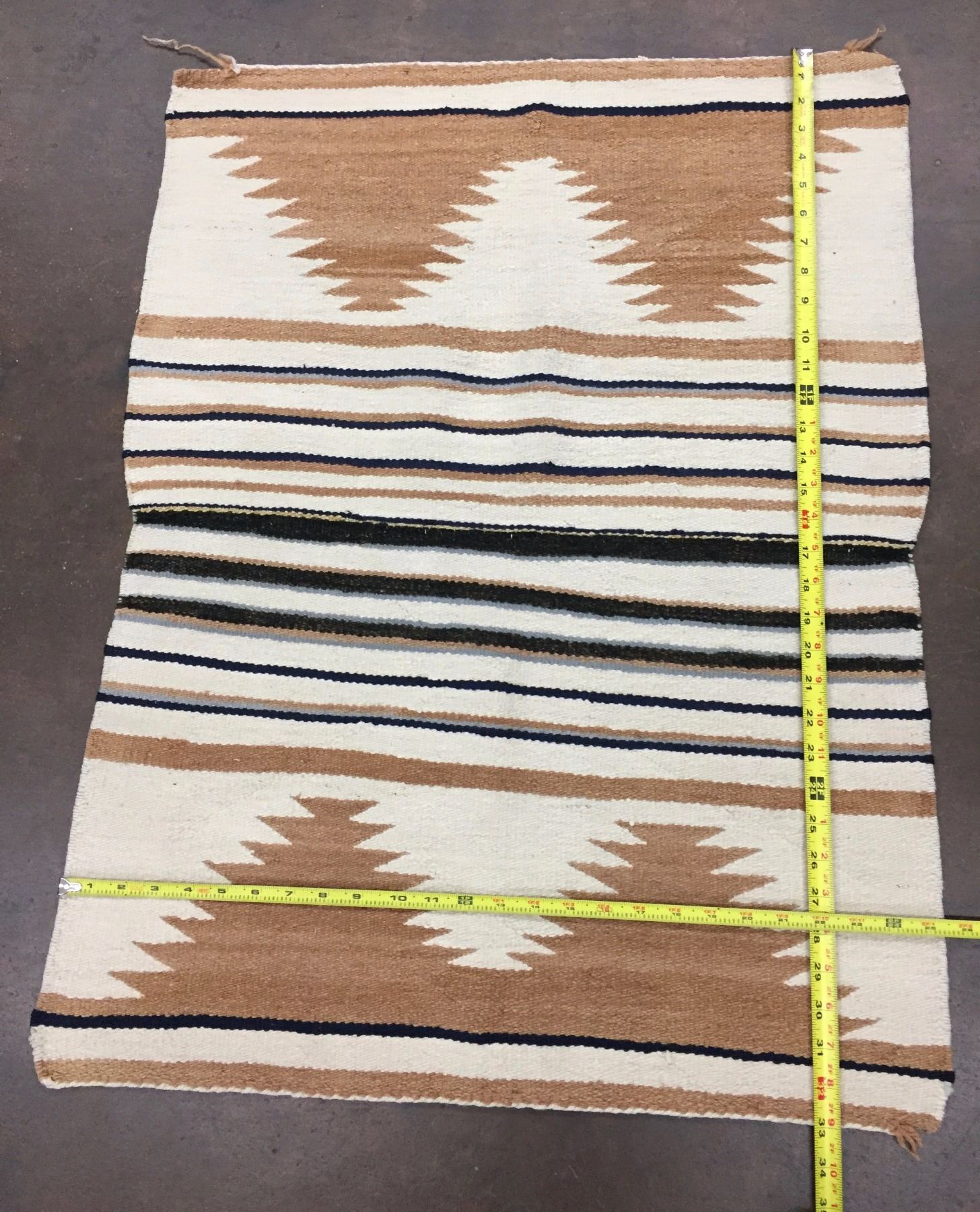 Description: Vintage Navajo textile. Maker: Unknown Navajo weaver. Approx. Age: Vintage. Size: 32 1/2” l x 25 1/2” w. Condition: Fair for its age, wear and fading expected. Please look closely at the pictures - they are an important part of our description. Shipping: There will be a $5 handling / packaging fee for shipping this lot. The actual cost of postage will be added on top of that.