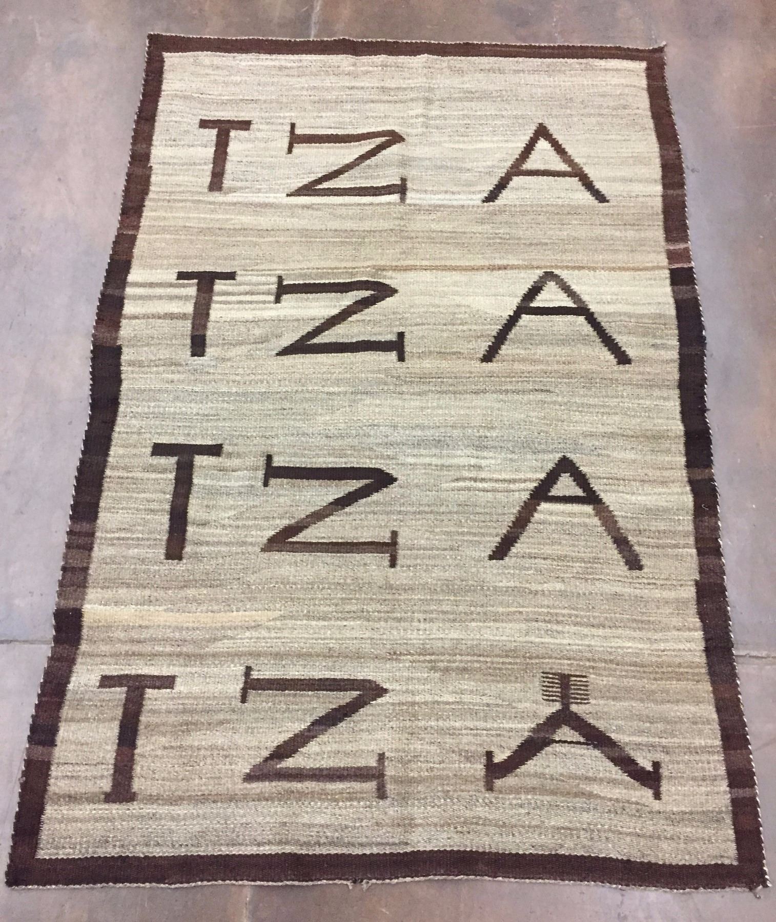 Description: Vintage Navajo textile. Maker: Unknown Navajo weaver. Approx. Age: Circa 1930s. Size: Approx. 62” l x 42” w. Condition: Fair for its age, wear expected. Please look closely at the pictures - they are an important part of our description. Shipping: There will be a $7 handling / packaging fee for shipping this lot. The actual cost of postage will be added on top of that.